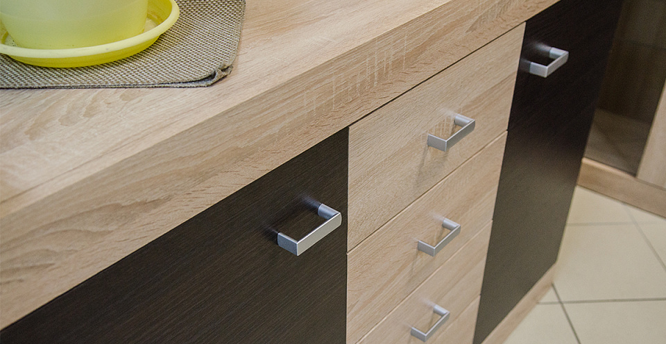 Фасад и корпус выполнены из ЛДСП. Дизайнерами отобраны два основных цвета - "дуб сонома" и "дуб ниагара". Цвета имеют древесную фактуру и пользуются высоким спросом среди покупателей на европейском и отечественном рынке.