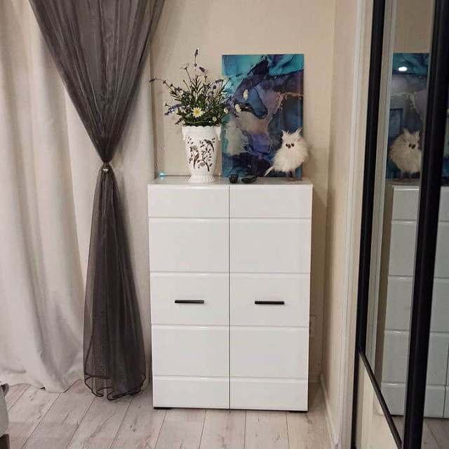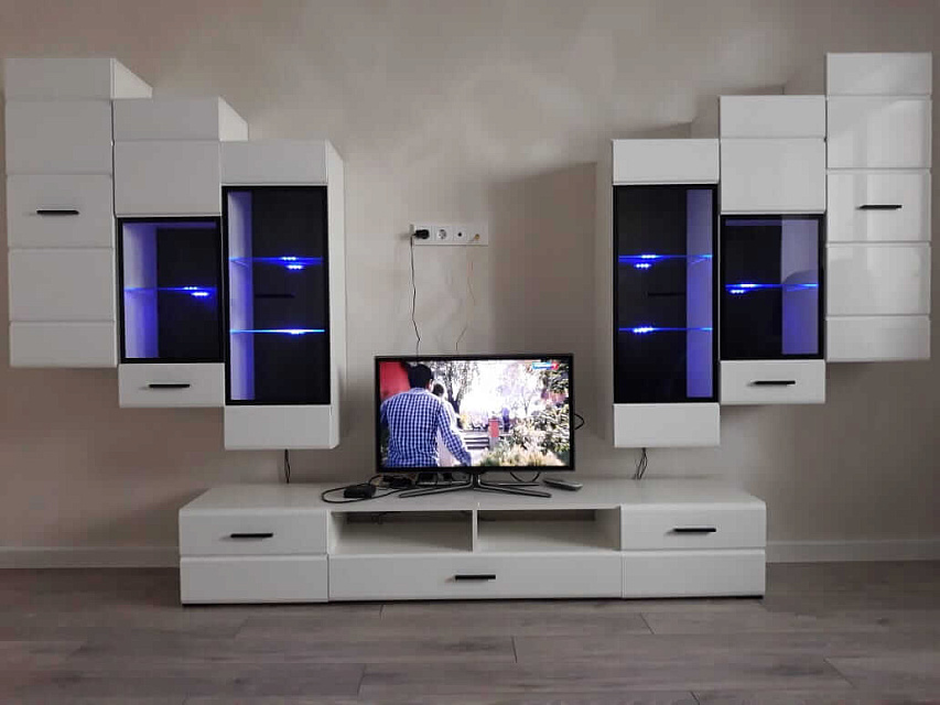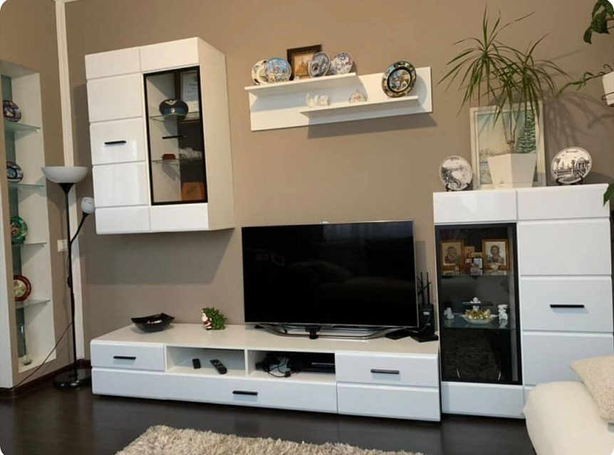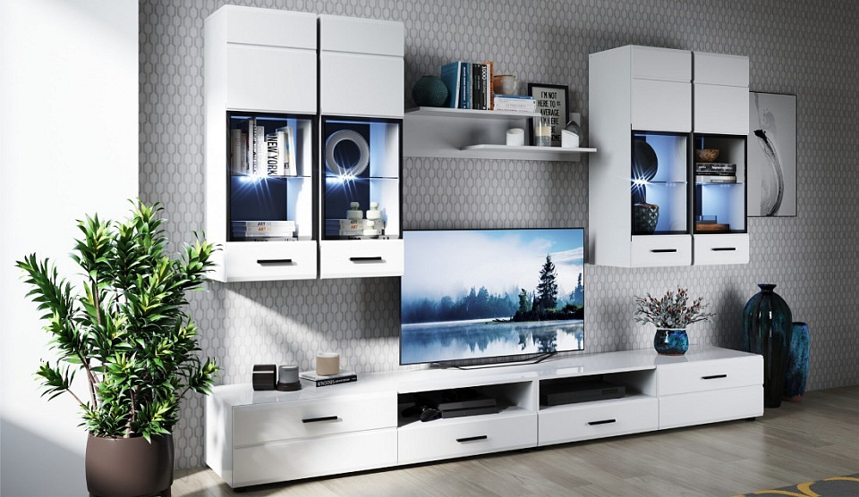 Коллекция Йорк выполнена в стиле минимализма. Строгие, лаконичные линии подчеркивают элегантность комплекта. Белый цвет мебели с деталями глубокого черного визуально сделает комнату светлее, просторнее и позволит составить безупречный по стилю комплект мебели. Сочетание глянцевой и стеклянной поверхностей, открытых полок создадут уютную обстановку и позволят украсить убранство комнаты приятными мелочами и разместить любимые книги и фото.