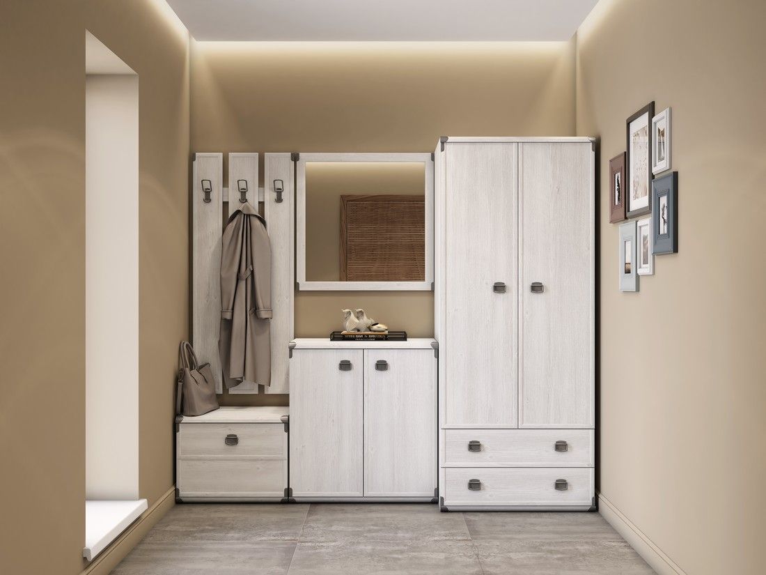 Коллекция Индиана не похожа ни на классическую, ни на современную мебельную моду. Имитация состаренного дерева, металлические накладки на углах, ярко выраженная древесная структура - далеко не все отличительные особенности коллекции. Благодаря широкому ряду элементов системы вы без труда обустроите прихожую.