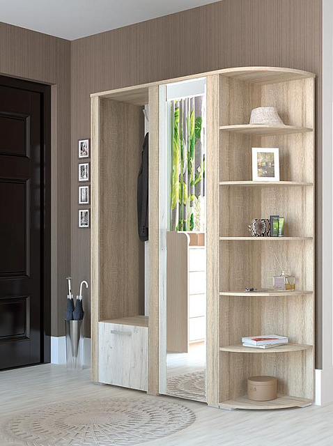 Набор Коламбия-6 создан для прихожей. Вариант обладает богатой древоподобностью и уникальной фактурой. А декоративные панели, объемные плиты, комбинированные в контрасте дверей и свежей фурнитуры, выделяют коллекцию Коламбия.