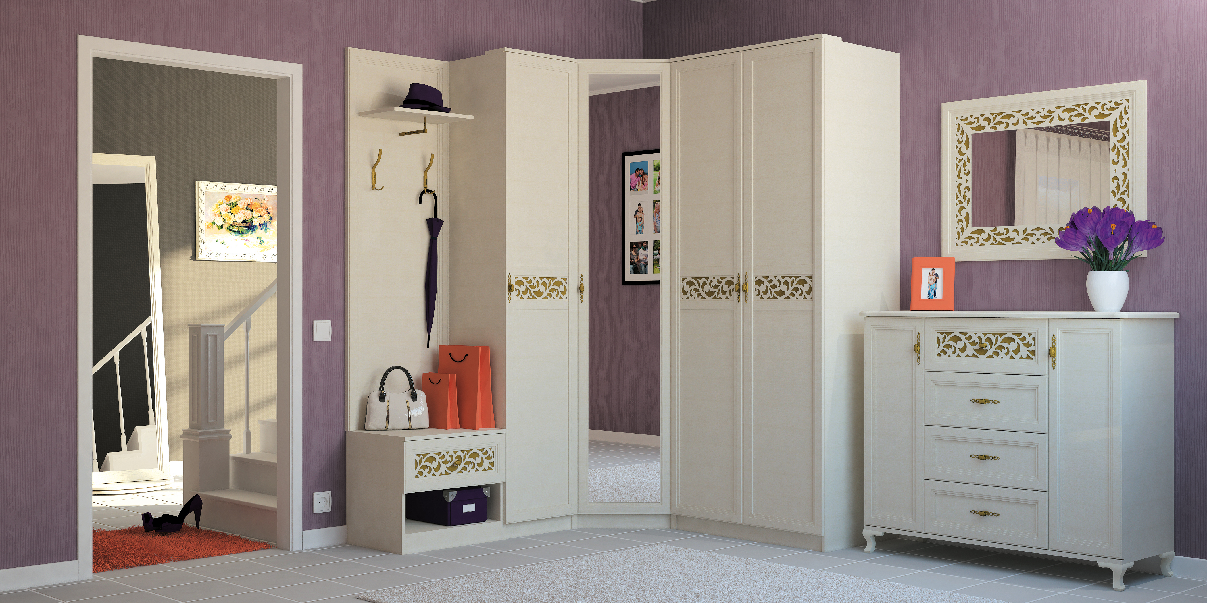 Уникальный цвет "weave светлый", ажурная фрезеровка придаёт прихожей изысканность и утончённость.