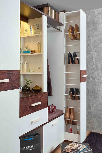 Модуль Норвуд 73 Шкаф для обуви отличается небольшими размерами и впечатляющим функционалом. Высокая и узкая обувница позволит более экономно использовать пространство прихожих в малогабаритных квартирах.