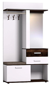 Шкаф МЦН 70 Норвуд включает множество элементов: крючки, стационарная штанга, открытые полки, выдвижные ящики, отделение за откидным фасадом, открытая ниша, зеркало с подсветкой. Встроенная светодиодная подсветка включается при помощи аккуратного кнопочного выключателя.Повесить зеркало на стену — хорошая идея, особенно в маленькой прихожей, где места для большой конструкции на подставке просто нет. Большое настенное зеркало визуально увеличит размер прихожей и даст возможность посмотреть на себя при выходе из дома. Норвуд 75 Зеркало навесное можно навесить как вертикально, так и горизонтально.