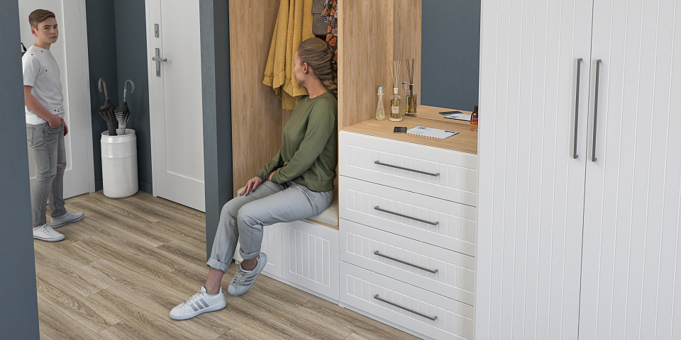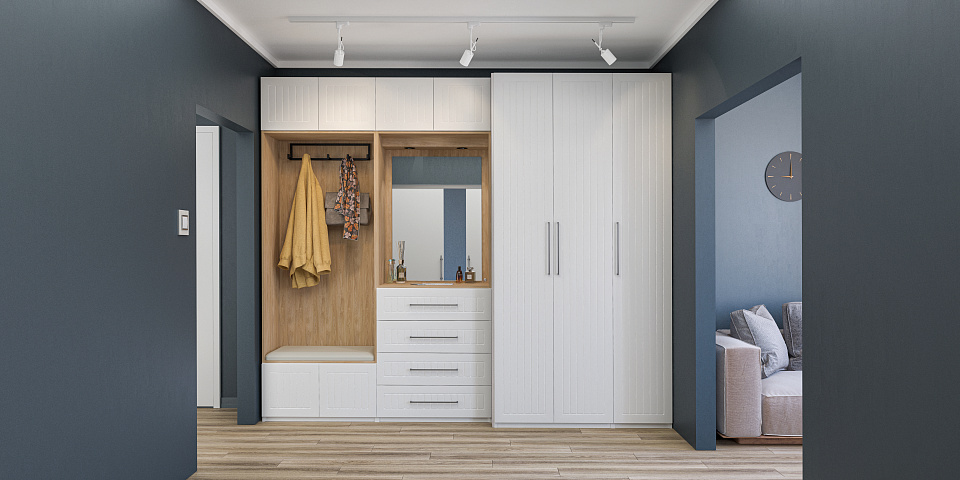 Прихожая Отис (Белый, МДФ, вертикальная фрезеровка)