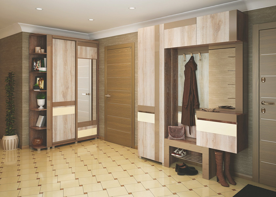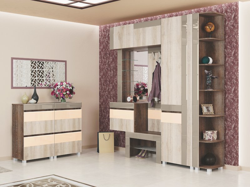 Серия «Прованс» в мягком исполнении дополнена эффектными вставками цвета «слоновой кости», что делает её оригинальным решением для любой прихожей. Комплект не занимает много места, однако при этом сюда можно уложить самые необходимые для выхода вещи.