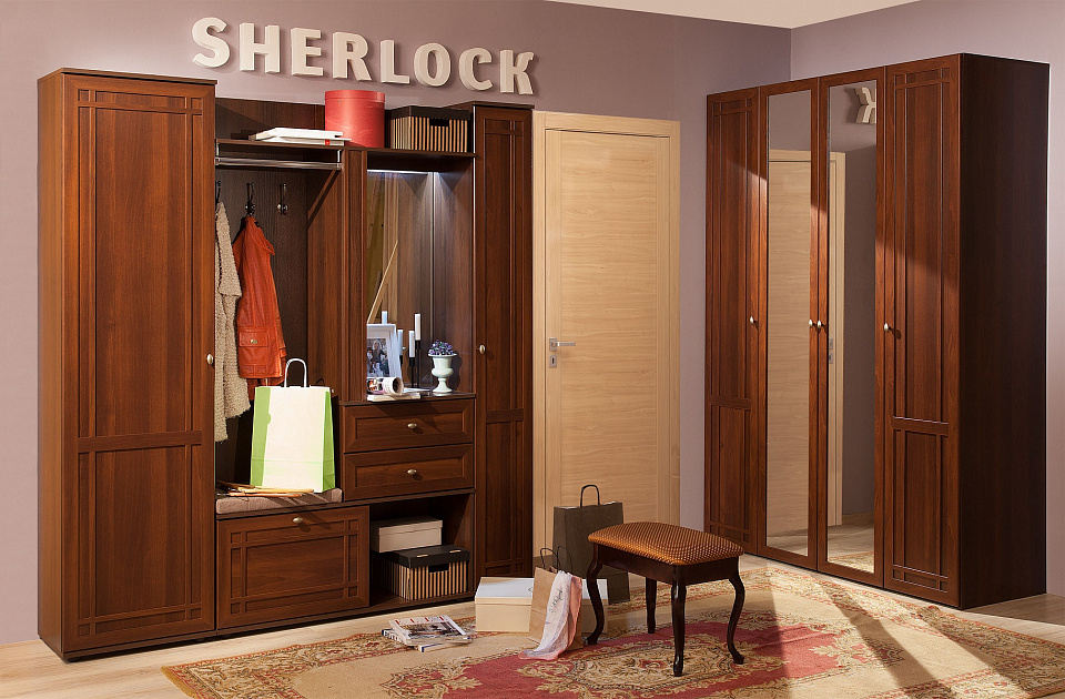 Секрет хорошей мебели для прихожей в том, чтобы при минимуме габаритов совместить в себе как можно больше функций. Классическая прихожая Sherlock - это только самые удобные модули в красивой стильной упаковке.