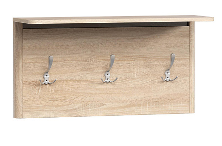 Настенная вешалка из коллекции «Тампере» будет незаменима в маленькой прихожей. Панель из ламинированной ДСП оснащена полкой для головных уборов и тремя крючками для верхней одежды. Держатели имеют практичную раздвоенную форму, что позволяет разместить больше вещей, а надежное крепление дает возможность повесить тяжелые зимние куртки и пальто.