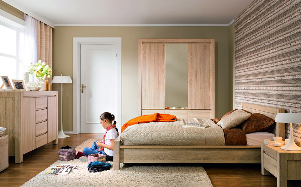 Коллекция носит массивный, монолитный характер, но при этом сохраняется легкость конструкций. Цвет "дуб сонома" подчеркивает неповторимость и элегантность мебели.