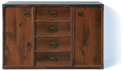 Коллекция мебели ИНДИАНА – набор в стиле дикого запада. Интересный дизайн набора, имитирующий состарившееся отполированное дерево, с оригинальной формой ручек, неповторимый характер. Функциональный и законченный вид элементов создают металлические края верхних и нижних углов мебели.