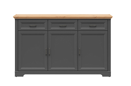 Коллекция Jasmin сочетает классику и скандинавские мотивы: столешницы с древесной текстурой, изящные гофрированные планки и металлические ручки. Графитовые фасады и фурнитура с системой плавного закрывания подчеркивают стиль «тёмный скандинавский».