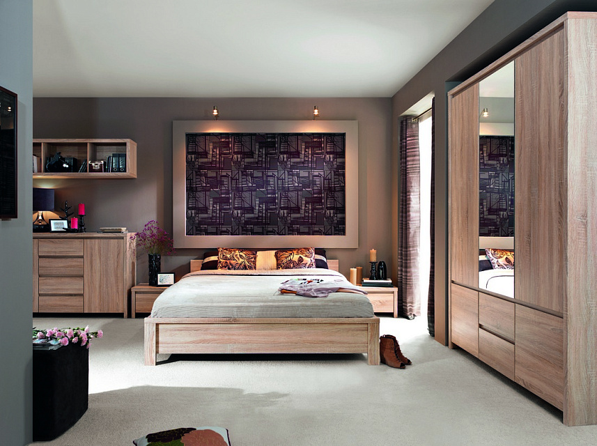 Большой выбор элементов поможет создать динамичный интерьер в спальне.