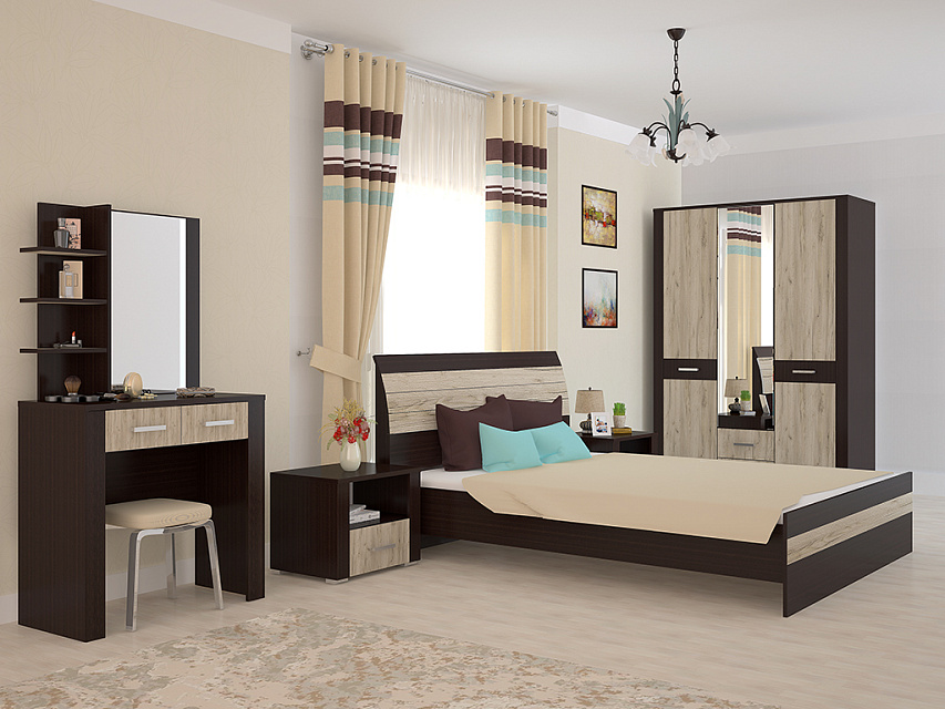 Набор Коламбия-4 - это уютное решение для вашей спальни. Вариант обладает богатой древоподобностью и уникальной фактурой. А декоративные панели, объемные плиты, комбинированные в контрасте дверей и свежей фурнитуры, выделяют коллекцию Коламбия.