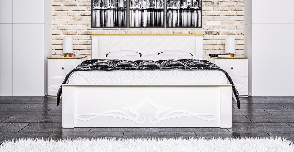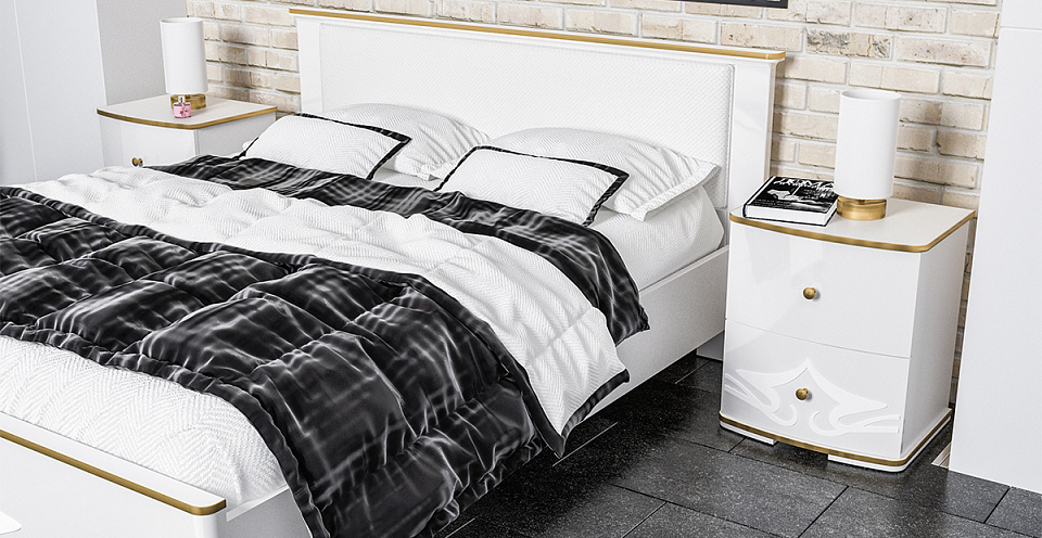 Светлые тона, эксклюзивное дизайнерское оформление, все это выглядит как уникальное решение для комнаты отдыха. Для большего комфорта, кровать выполнена с мягким изголовьем, а предусмотренная система хранения увеличит полезное пространство комнаты.