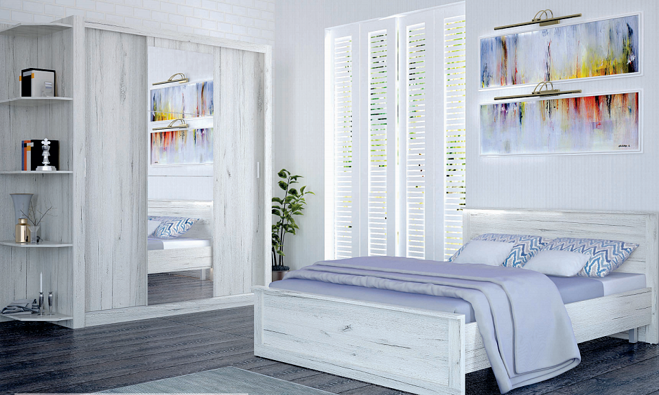 Лима - это лаконичная спальня в древесно-фактурном декоре. Набор отличается применением декоративных панелей, разно-объемных плит и широкой функциональностью шкафов-купе с фасадными шуфлядами и без, декорированными мозаикой из зеркал. Для комфортного использования применяются шариковые направляющие. Вариант декора "дуб белый" обладает потрясающей фактурой и является гарантом эстетичности.