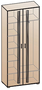 Фасадная часть - фрезерованная плита МДФ 16 мм под пленкой ПВХ и ЛДСП, декорированная зеркалами с обработкой фацет. В серии применены накладные ручки-профили 128 мм и ручки-скобы 96 мм (сатин светлый).