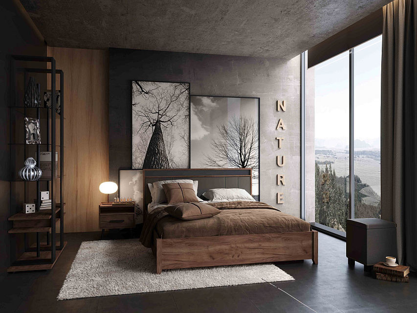 Сдержанная, лаконичная, но в то же время эффектная коллекция понравится современным независимым и динамичным людям, которые ценят свободу и пространство. Простые прямые линии, отсутствие сглаженных углов и лишних изгибов придают спальне Nature особую атмосферу стиля лофт.
