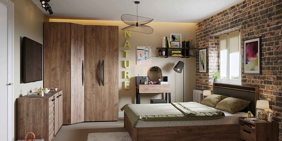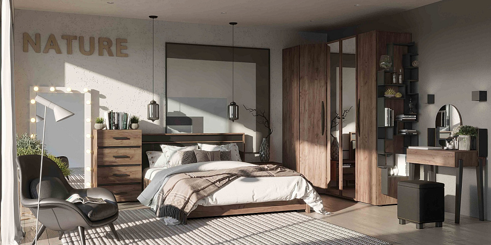 Спальня Nature - настоящая находка для ценителей природы. Природная простота и естественность декора объединяются с удобством и практичностью мебели.