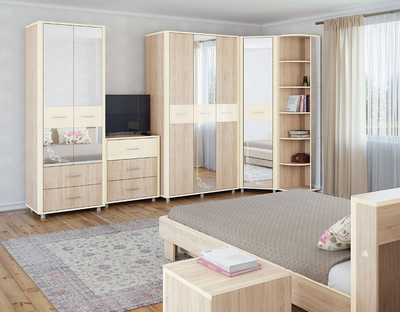 Отличительные особенности спальни «Оливия» становятся её преимуществами. Актуальный цвет и модное сочетание текстур придадут свежести вашей спальни, а скругленные за счет использования специального профиля углы позволят не беспокоится о безопасности ваших детей и Вас.