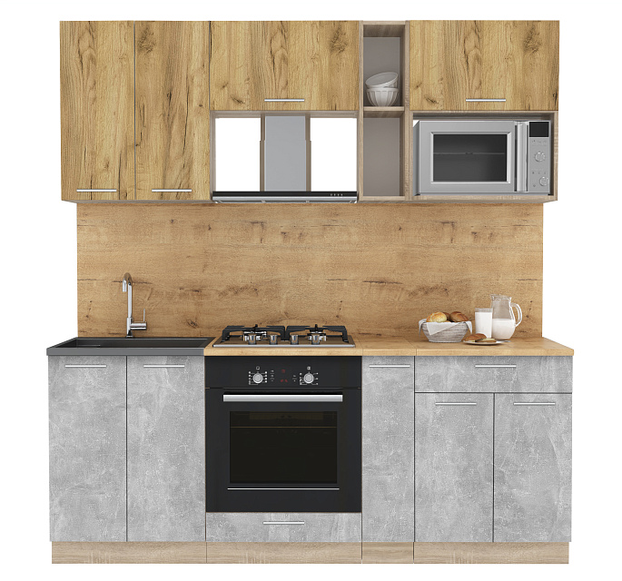 Кухня Мила Дуб золотой+Бетон Интерлиния