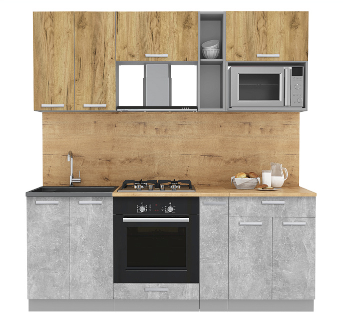 Кухня Мила Лайт Дуб золотой+Бетон Интерлиния