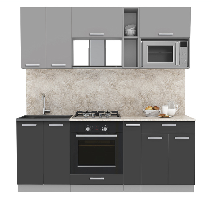 Кухня Мила Лайт Серебро+Антрацит Интерлиния