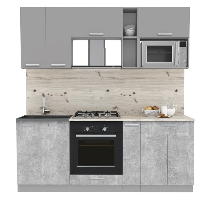 Кухня Мила Лайт Серебро+Бетон Интерлиния