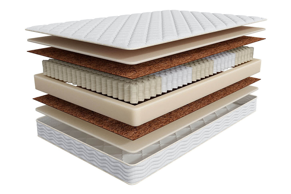 Кокосовая койра, Пенополиуретан, Блок независимых пружин, Чехол, Войлок, Трикотаж