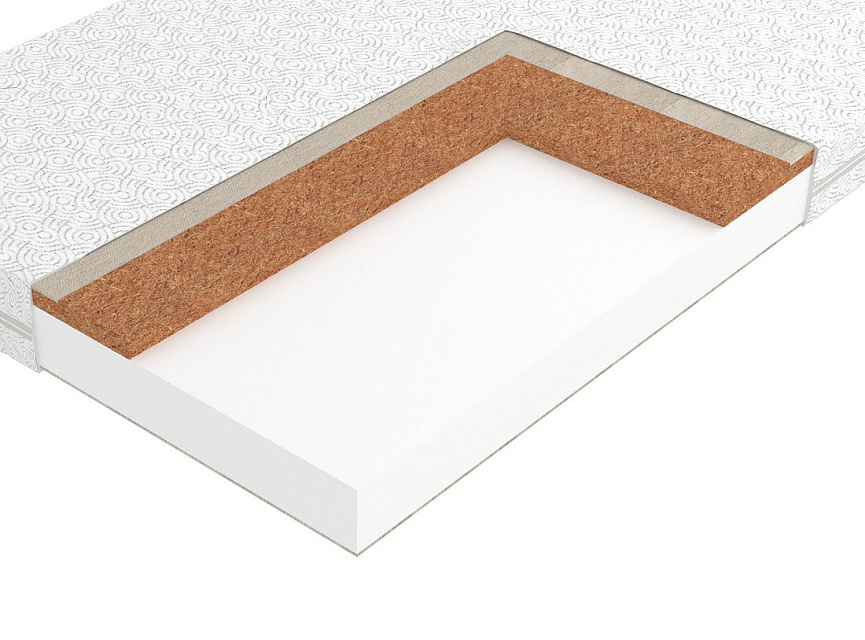 Натуральный гипоаллергенный материал. Благодаря пропитке из натурального латекса, волокна прочно скреплены в цельную плиту. Кокосовое волокно придает матрасу жёсткость и обладает бактерицидными свойствами. Производство – Enkev, Польша.