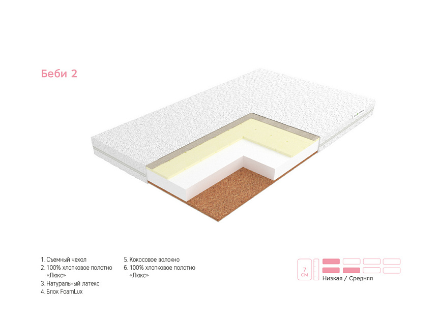 Латекс, Хлопковое полотно, Чехол, FoamLux, Кокосовое волокно