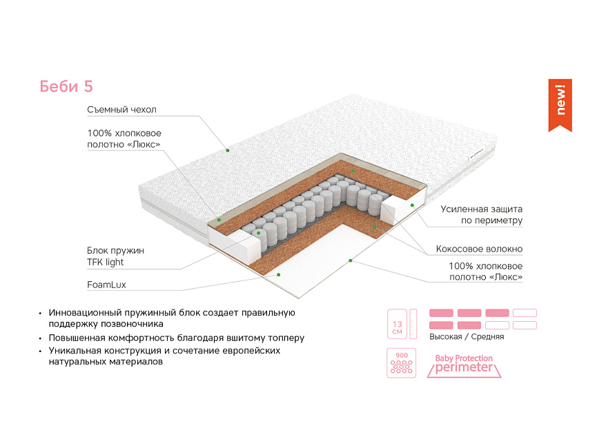 Натуральный гипоаллергенный материал. Благодаря пропитке из натурального латекса, волокна прочно скреплены в цельную плиту. Кокосовое волокно придает матрасу жёсткость и обладает бактерицидными свойствами. Производство – Enkev, Польша.