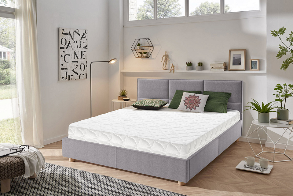 Доступная модель матраса с универсальной средней жесткостью сторон на основе AirFoam, кокосовой койры и блока независимых пружин.