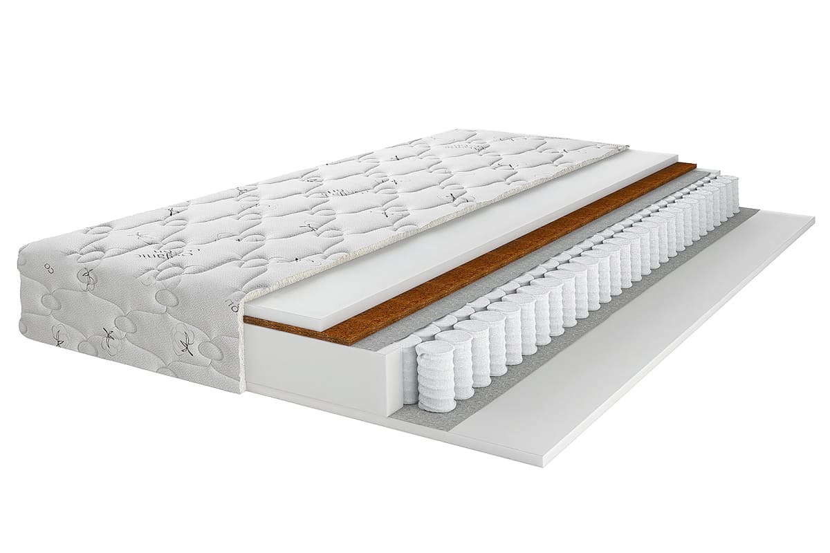 Кокосовая койра, Блок независимых пружин, Чехол, Высокоэластичная пена, Усиление по периметру матраса