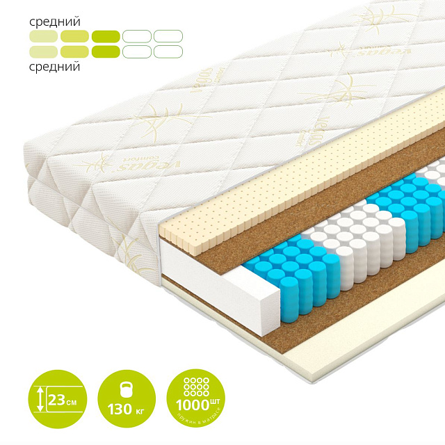 Кокосовая койра, Латекс, Блок независимых пружин, Чехол
