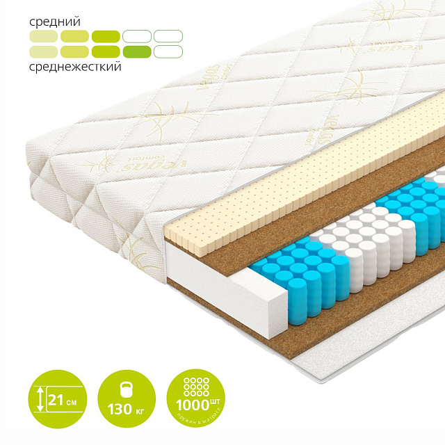 Кокосовая койра, Латекс, Блок независимых пружин, Чехол, Мебельная сетка