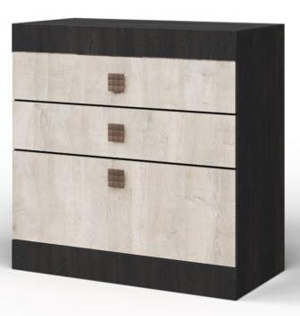 Детали комода, которые в эксплуатации подвержены механическим повреждениям, облицованы кромкой ПВХ толщиной 2 мм. Задняя стенка изготовлена из ХДФ. Верхние два ящика для более компактных вещей, нижний – более вместительный.