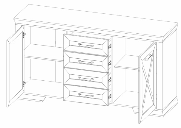 - 2 распашные двери и 4 выдвижных ящика на металлических шариковых направляющих;