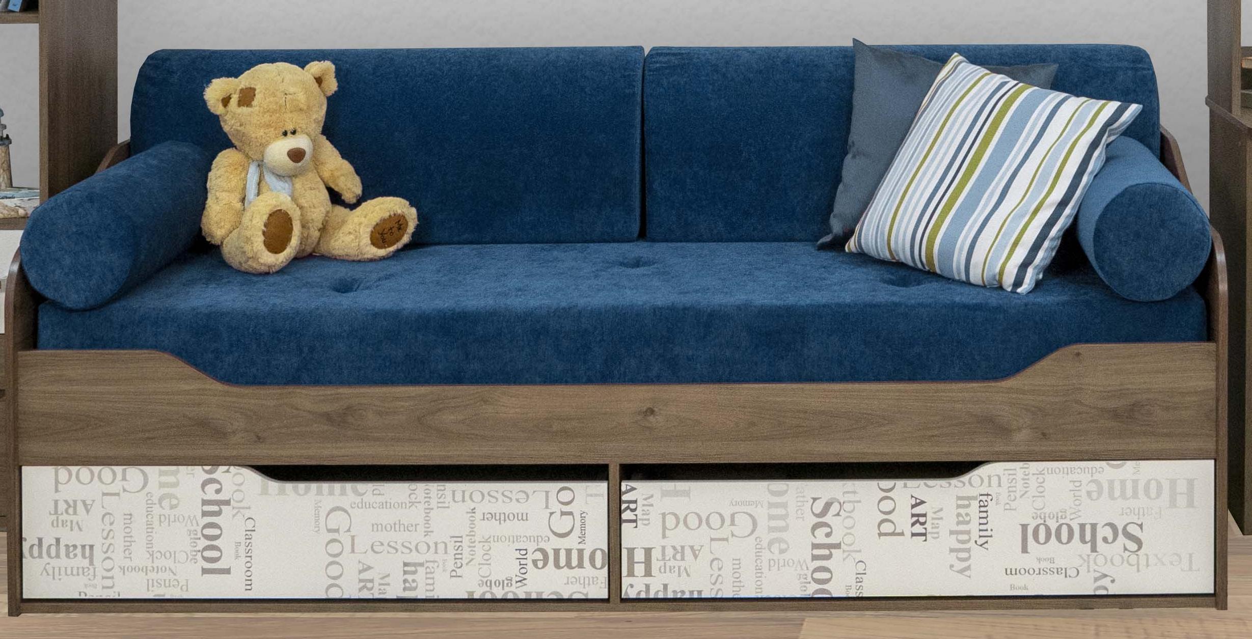 Кровать-диван с ящиками 0,9х2,0 "Гарвард" комплектуется двумя выдвижными ящиками, с фрезеровкой на накладках вместо ручек и основанием из ЛДСП. Спальное место 900*2000 мм. Кровать рассчитана на матрац толщиной до 180 мм (матрас приобретается отдельно). Боковые щитки кровати облицованы кромкой 2 мм.