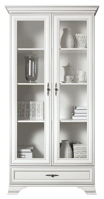 - 2 распашные двери со стеклянными вставками и 1 выдвижной ящик;
