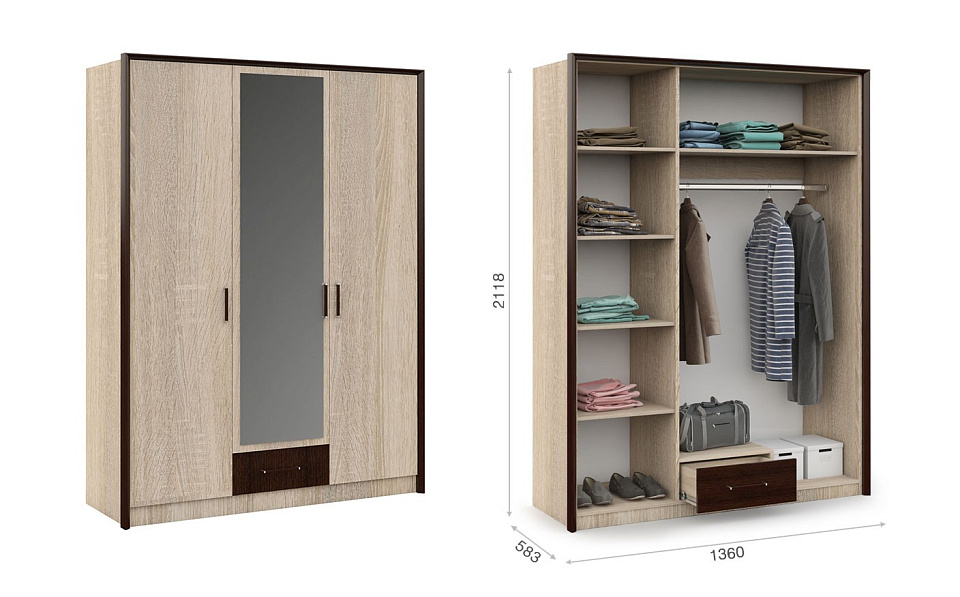 Шкаф 3-х дверный