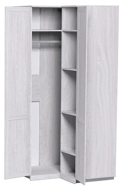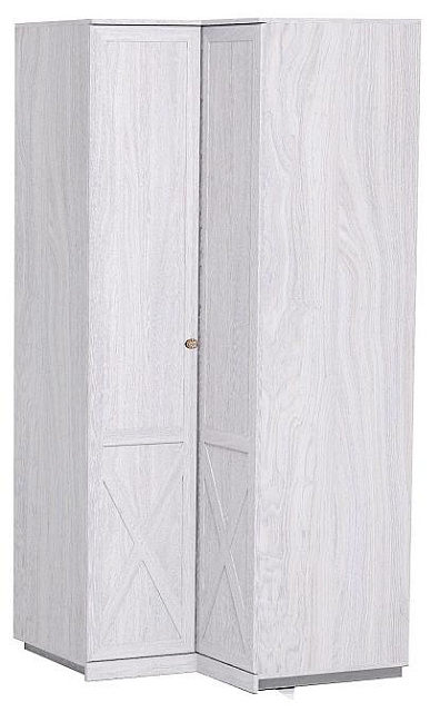 Шкаф угловой Г-образной конструкции с рядом полок, регулируемых по высоте, и стационарной штангой наиболее практичен с точки зрения эффективности используемого пространства в сравнении с обычными угловыми шкафами. Такой шкаф эффективно использует пространство вдоль стен помещения, он как будто состоит из двух шкафов поставленных друг к другу под углом 90 градусов. Петли BOYARD с углом открывания 165 градусов позволяют комфортно пользоваться наполнением шкафа. Ручка предусмотрена только для одного фасада, второй фасад открывается за торец. Цоколь и крестообразная раскладка на фасадах подчеркивают стиль Прованс. В создании компоновок из ряда шкафов с модулем 14 Шкаф угловой общий карниз не предусмотрен!
