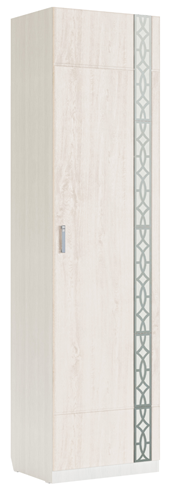 Правосторонняя и левосторонняя сборка. Петли с демпфером плавного закрывания. Комплектуется выдвижной штангой и четырьмя съемными полками. Декор: зеркало с пескоструйным рисунком.
