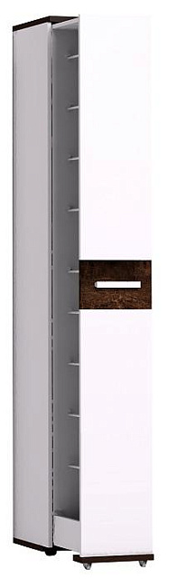 Высокая и узкая обувница - уникальное предложение на рынке мебели. Узкая обувница поможет аккуратной хозяюшке разложить до 18 пар обуви, а также средства по уходу за ней. Шкаф выдвигается без усилий благодаря шариковым направляющим полного выдвижения и выкатным роликам. Пространство внутри шкафа вентилируется с помощью небольших отверстий на крышке и дне выдвижной части шкафа. Предусмотрена право- и левосторонняя сборка модуля.
