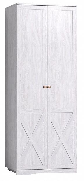 Распашной шкаф с глухими дверями комплектуется стационарной штангой для одежды длиной 75 см. Крестообразная раскладка на фасадах и фигурный цоколь помогут мебелировать комнату в стилистике Прованс.