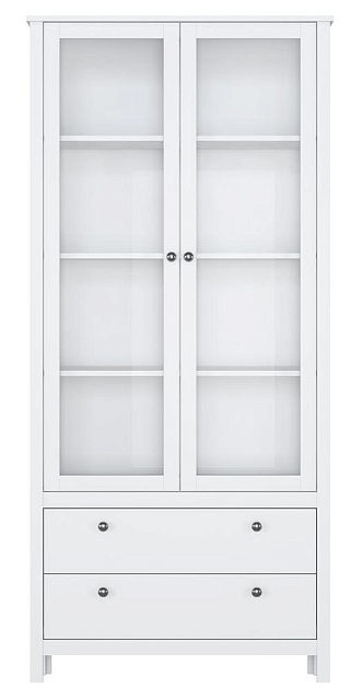 - Вместительная витрина; - За распашными дверями со стеклянной вставкой 4 отделения; - Выдвижные ящики на металлических направляющих.