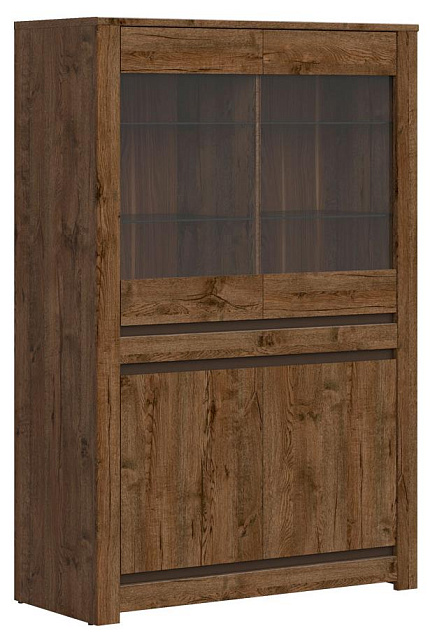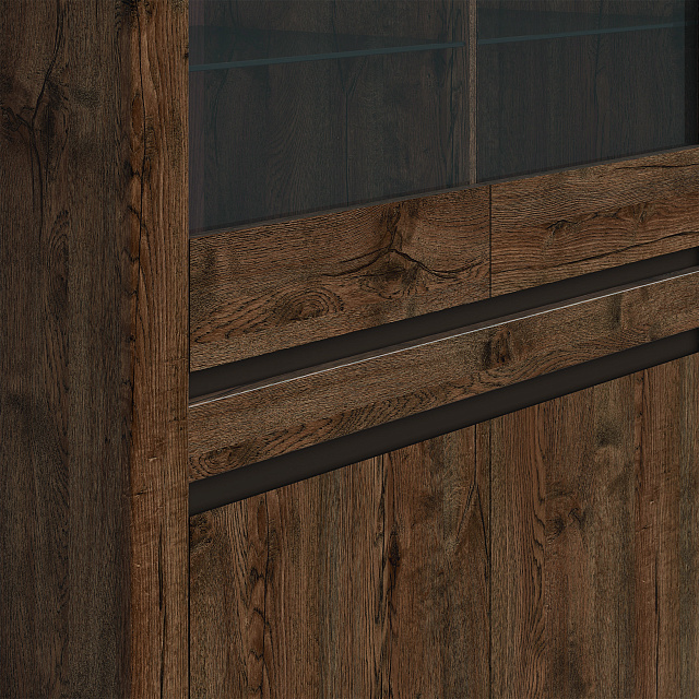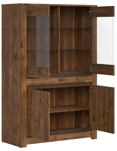 - Верхнее: отделение со стеклянными полками за распашными дверями со стеклянной вставкой;