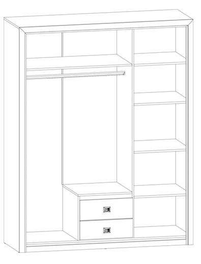 - В отделении для одежды находится штанга для вешалок-плечиков и удобная полка, а также отделение с двумя выдвижными ящиками;