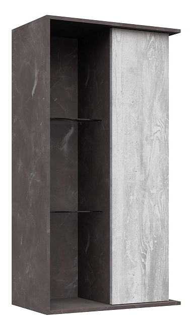 Петли без доводчиков, При желании петли с доводчиками можно приобрести дополнительно и самостоятельно установить их. Детали шкафа навесного, которые в эксплуатации подвержены механическим повреждениям, облицованы кромкой ПВХ толщиной 2 мм. В правой части установлены две съемные полки из ДСП, в левой открытой части установлены две съемные стеклянные полки. Двери изготовлены больше корпуса со свесом для удобства открывания. Крепится шкаф к стене через отверстия в задней стенке. Шкаф навесной является дополнением к группе : тумба «Оникс» КМК 0868.1 и полка «Оникс» КМК 0868.2