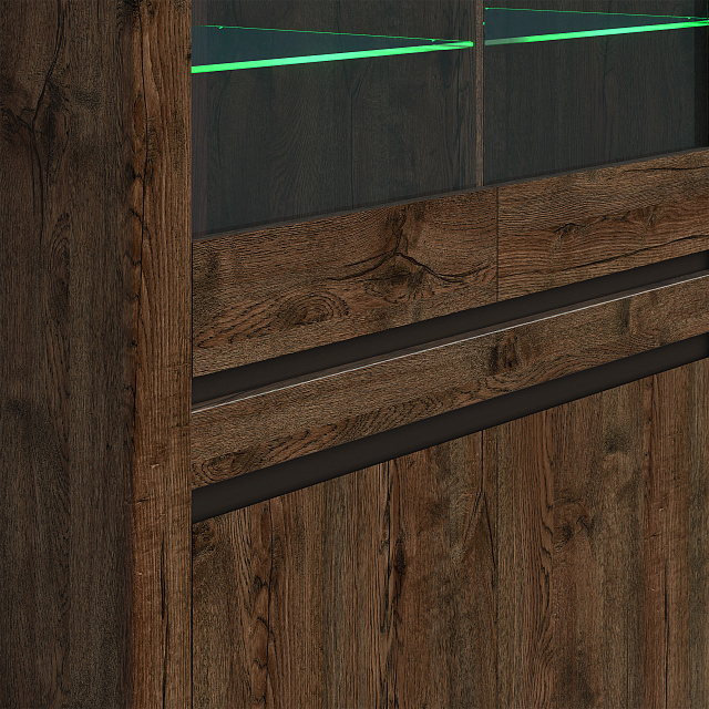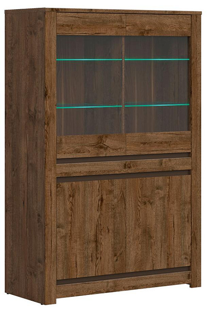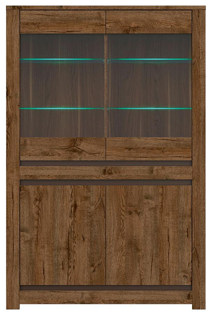 - Верхнее: отделение со стеклянными полками за распашными дверями со стеклянной вставкой;