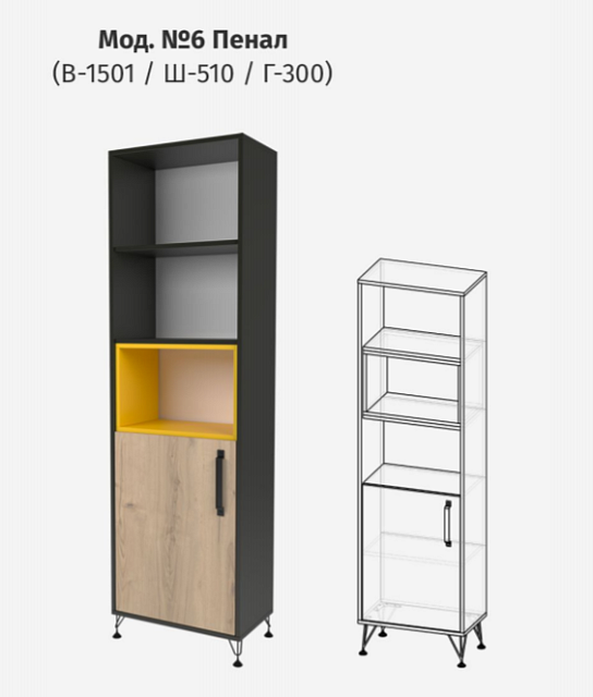 Шкаф-пенал Александрия с выдвижным открытым ящиком-полкой, предназначен для комфортного хранения книг, документов, предметов декора и полезных мелочей. Металлические опоры подчеркивают современность и на кажущуюся воздушность и хрупкость надежно удержат стеллаж с наполнением. Материал: ЛДСП 16 мм/ПВХ