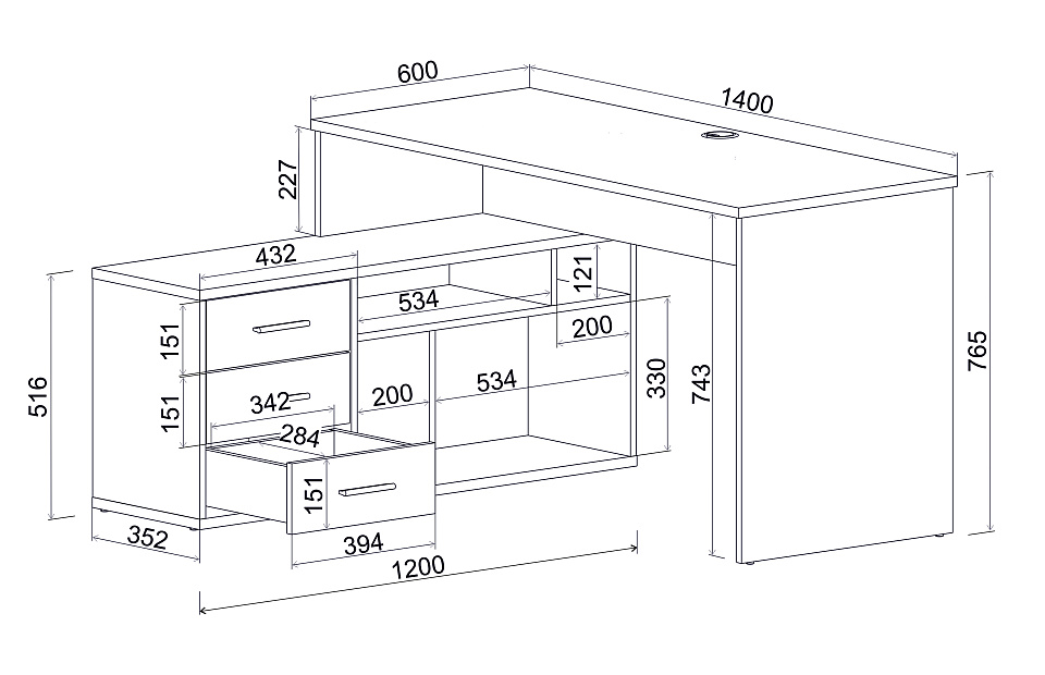 Столешница 22мм. Направляющие шариковые. Ручка С24 матовый чёрный. Мебельные опоры.<br>
